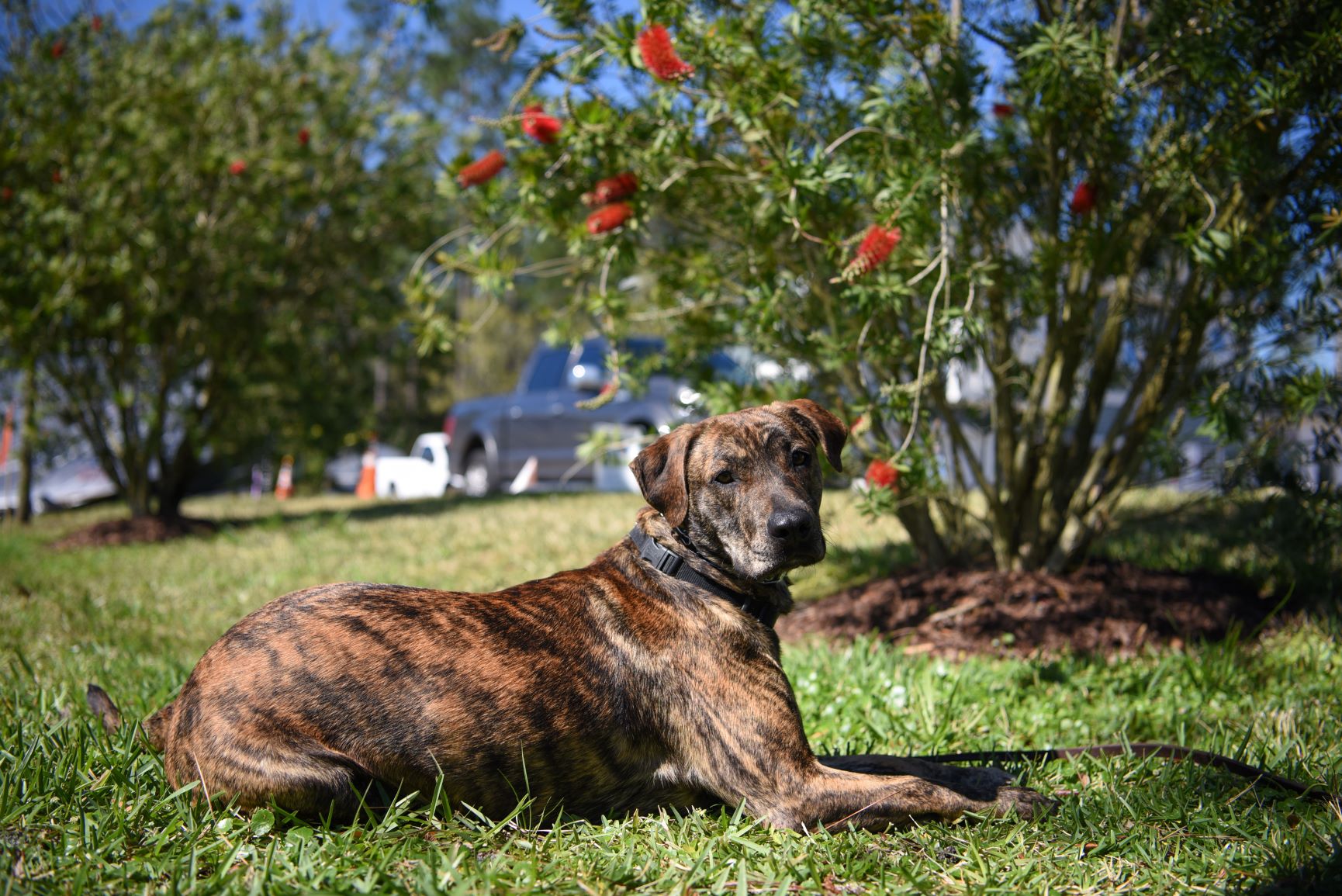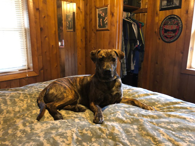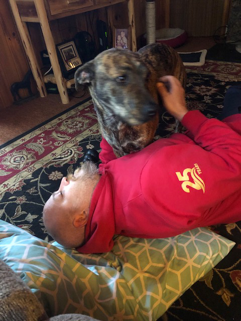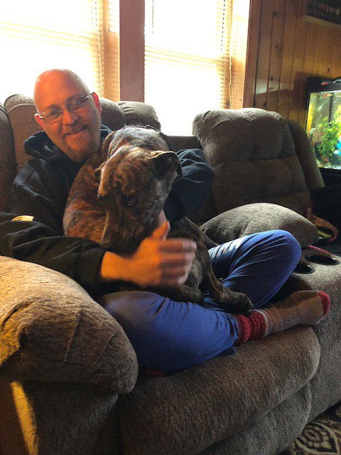 He really was on a road to destruction and I was lost on how to help. But Joe sent us your way and I my self was so hopeful but scared also as we have tried so much in 13 years dealing with tbi, ptsd and just life in general. I know that it has only been a month but it seems so different and I am very hopeful that as time goes by we will live more comfortable. I know it will never be the same as I have adjusted to the fact. But it is gratefully going in a better place for us, especially Brian. First Vet visit today was great. Here are some pictures of Apollo and Brian.