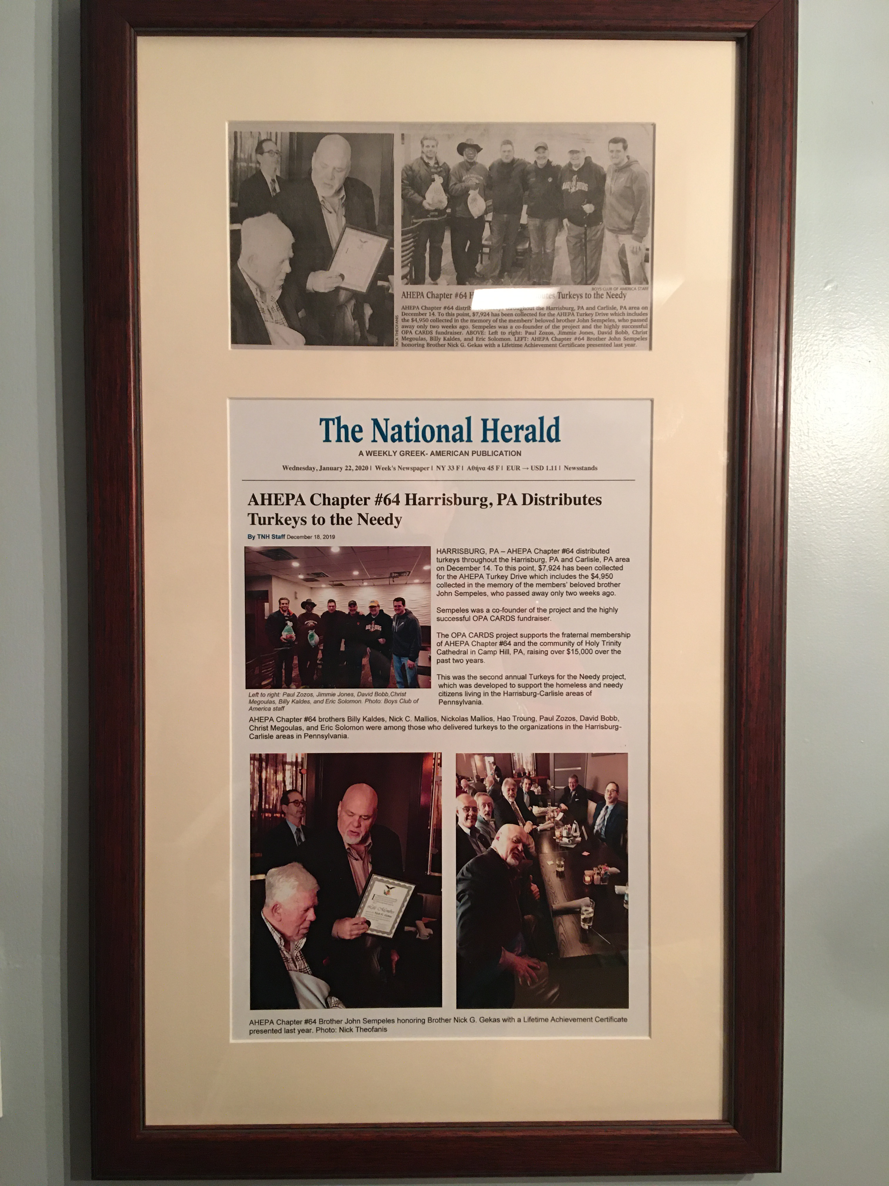 AHEPA District #4 Chapters and brothers : Harrisburg Chapter #64 ($6,000),Allentown Chapter #60 ($4,100), Beaver Valley #400 ($1,200), District #4 ($1,000),