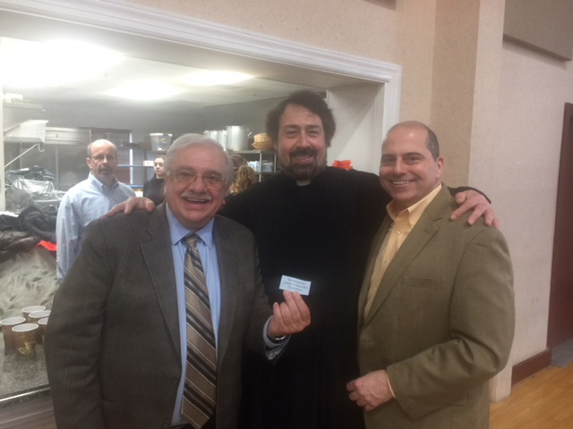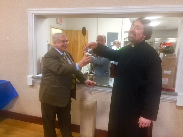 Fr. Panayiotis picks the winner during coffee hour. with Chaiman George Karatzia, 01/11/2018 (left).