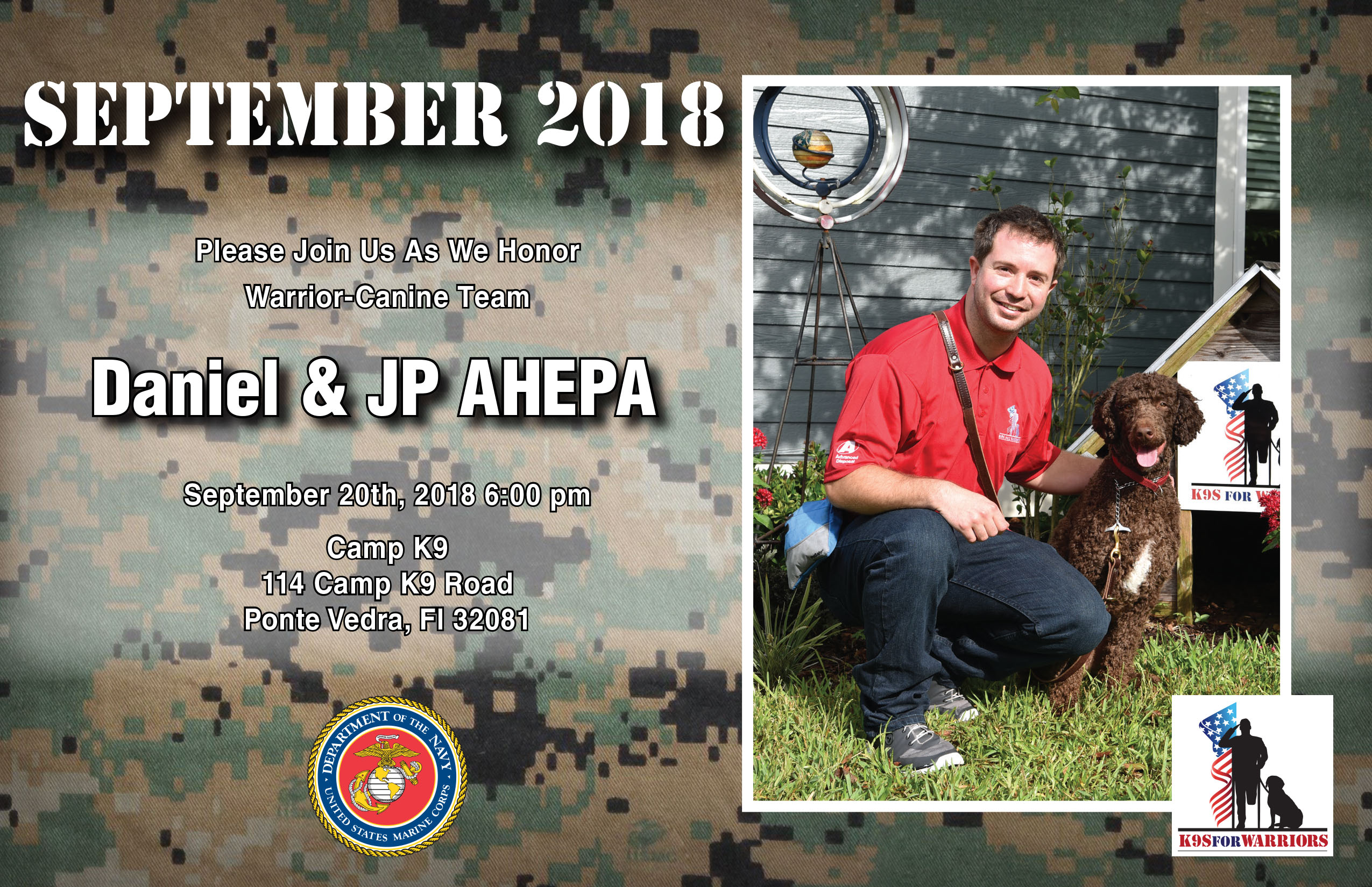 JJP AHEPA has washed from the program due to being hyper focused on strange dogs while out in public and not being able to refocus. JP AHEPA will go to the top of the waitlist and I am sure we will have another dog named by next week.