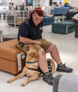Patrick AHEPA here coming in hot with a sponsor update!! These last few weeks have been full of learning! I got to go to some more parks and work my intermediate skills. I saw ducks and children playing and was able to use my impulse control to stay calm and pass by all of it without getting distracted from my handler! I also went to IKEA and walked the whole store! It felt like a maze, my handler got lost a few times trying to figure her way out of the store. I followed her wherever even if we ended up in a dead end. I'm starting to really understand settling and relaxing. When my handler is working on the computer, I get to lay on a place bed and relax next to her and if I don’t try to leave my bed, I get a Bull horn to chew on AND I get pets and extra treats for focusing on her. My handler tells me I’m a good boy and that she can see how hard I am trying to be the bestest boy! Oh also, I got to go to the beach on Friday. It was a little too much for me. Lots of noises and things to look at, it was really hard for me to focus on my trainer, but I tried REALLY hard. I've been working on my service cues and the cues needed when my handler is sitting in her chair. I love when I get to do “my lap.” That’s when I get to put my front legs on my handler’s lap and give her some loving! Sometimes I sneak in licks and kisses which she isn't a big fan of, but I'm such a big lover. I also attempted my advances skills test today; I was more interested in bothering my handler and getting reinforcements rather than doing the cues. I tried really hard but my puppy energy was really showing today. Sometimes it's hard to just settle and stay in one spot as there is so much to look at!!! My handler said she is very proud of me for trying as hard as I do. I do put a great effort in and always try to do what my handler asks. Anyway, time to go play some fetch and work on my recall and drop it!! I hope you guys have a wonderful week! Woof woof Patrick 10/2022