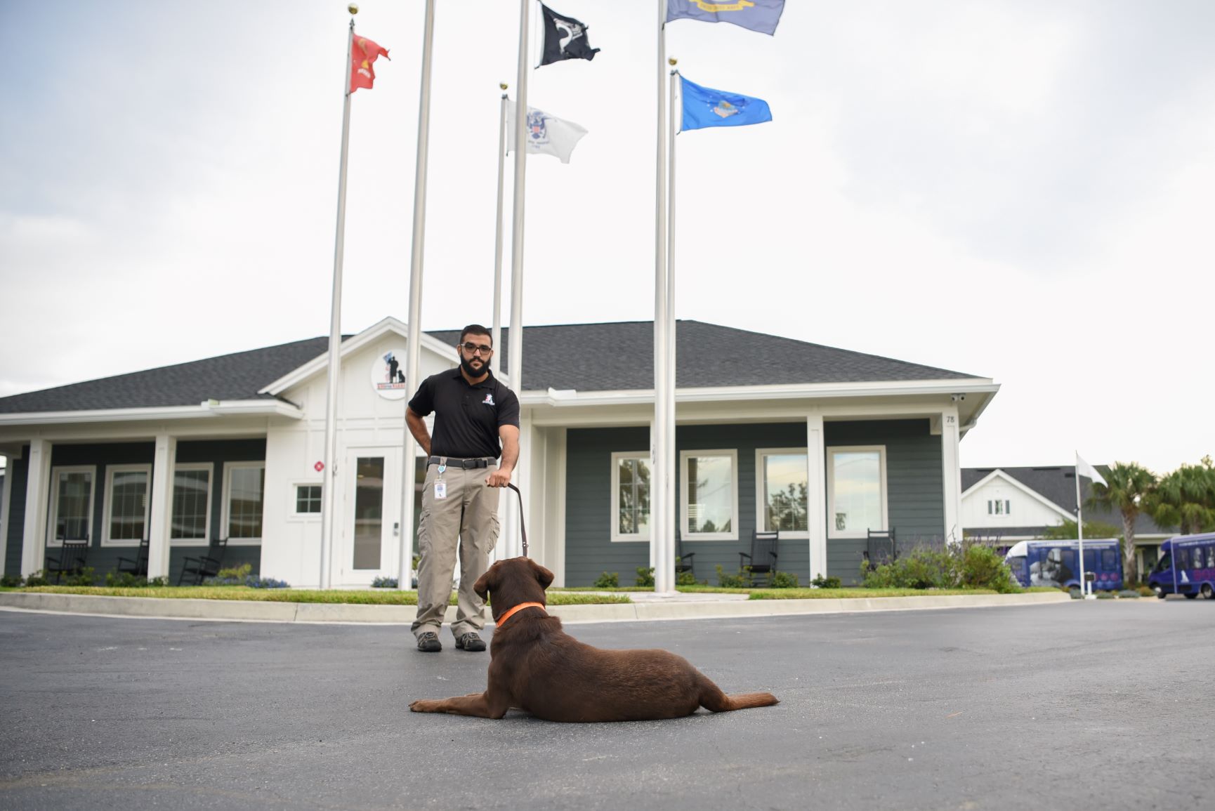 Hello again. I happy to report that Eva is a Rockstar. The last two weeks we been going to high traffic areas and working around all the distraction you could think of. We spent a lot of time at Ikea, Costco, and historical St Augustine. These particular locations are always busy no matter what time of day it is. When I say busy, I mean busy. These high stress locations were no issue for Eva. She always remains focused on me and is not distracted by people or strange dogs, or even strange smells. Eva continues to improve across the board and is wonderful to work with. She does have a small amount of anxiety when placed in tight areas. She also is very social so when she's approached by other dogs or people, she will break her position to try and make a friend. We have been working on impulse control exercises and now, have no problem leaving Eva in down and having anyone walk up to her because I know she is not going to break her down. As she continues training, I look forward to the day she is paired with her Warrior and makes a positive impact on her Warrior's life.