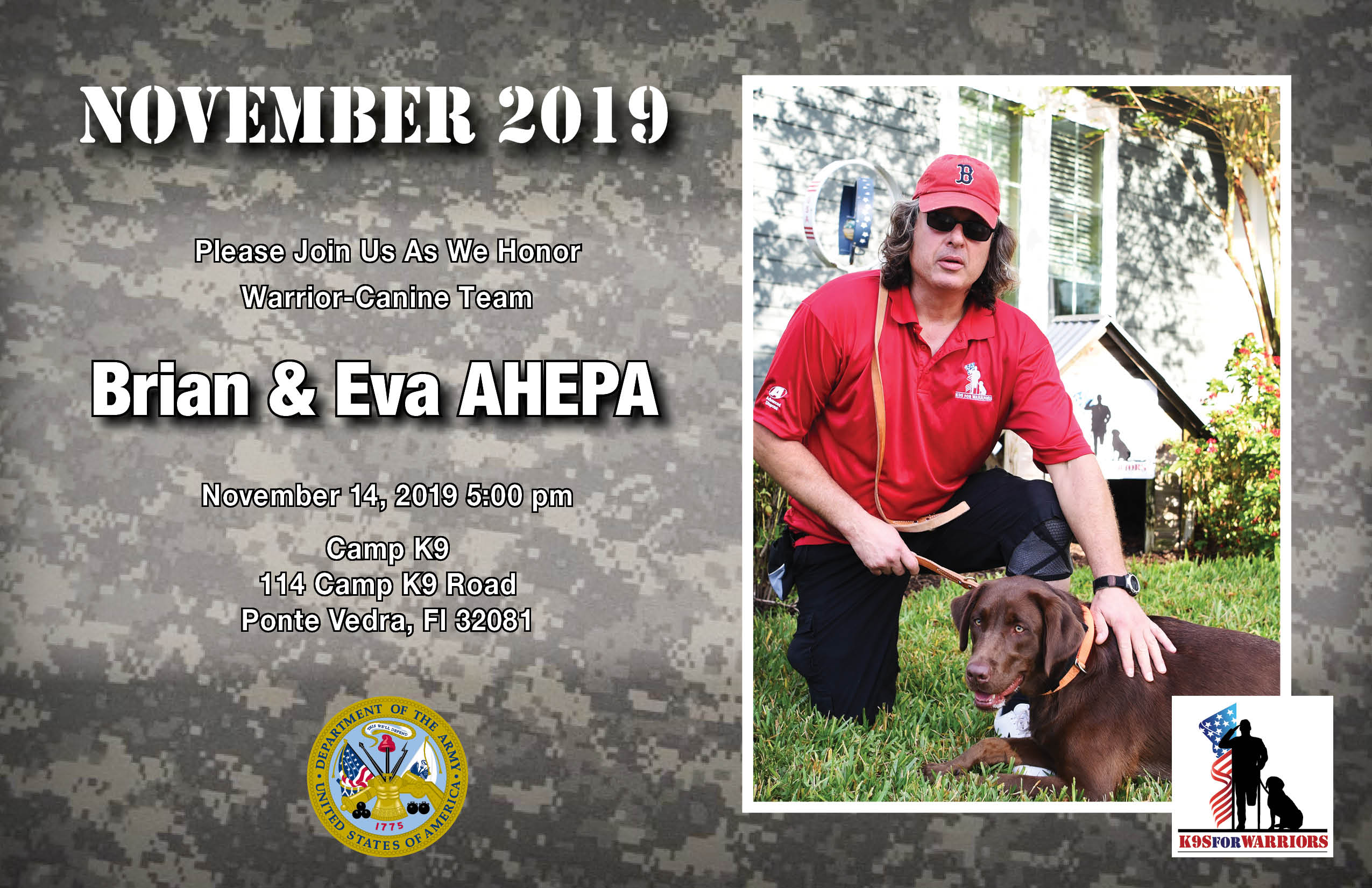 It is A TRUE HONOR that Eva lives on through the K9 for Warriors Program enabling a deserving warrior assistance with his future.