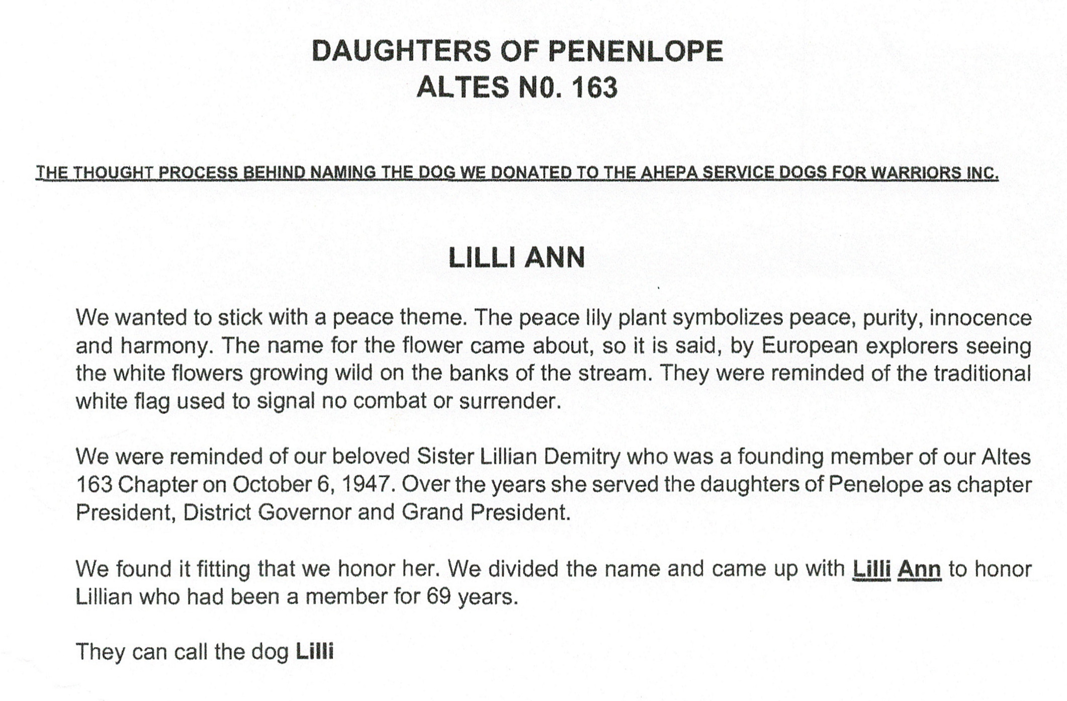 And then we were reminded of our beloved Sister Lilliann Demitry who was a founding member of Our ALTES #163 Chapter on October 6,1947.