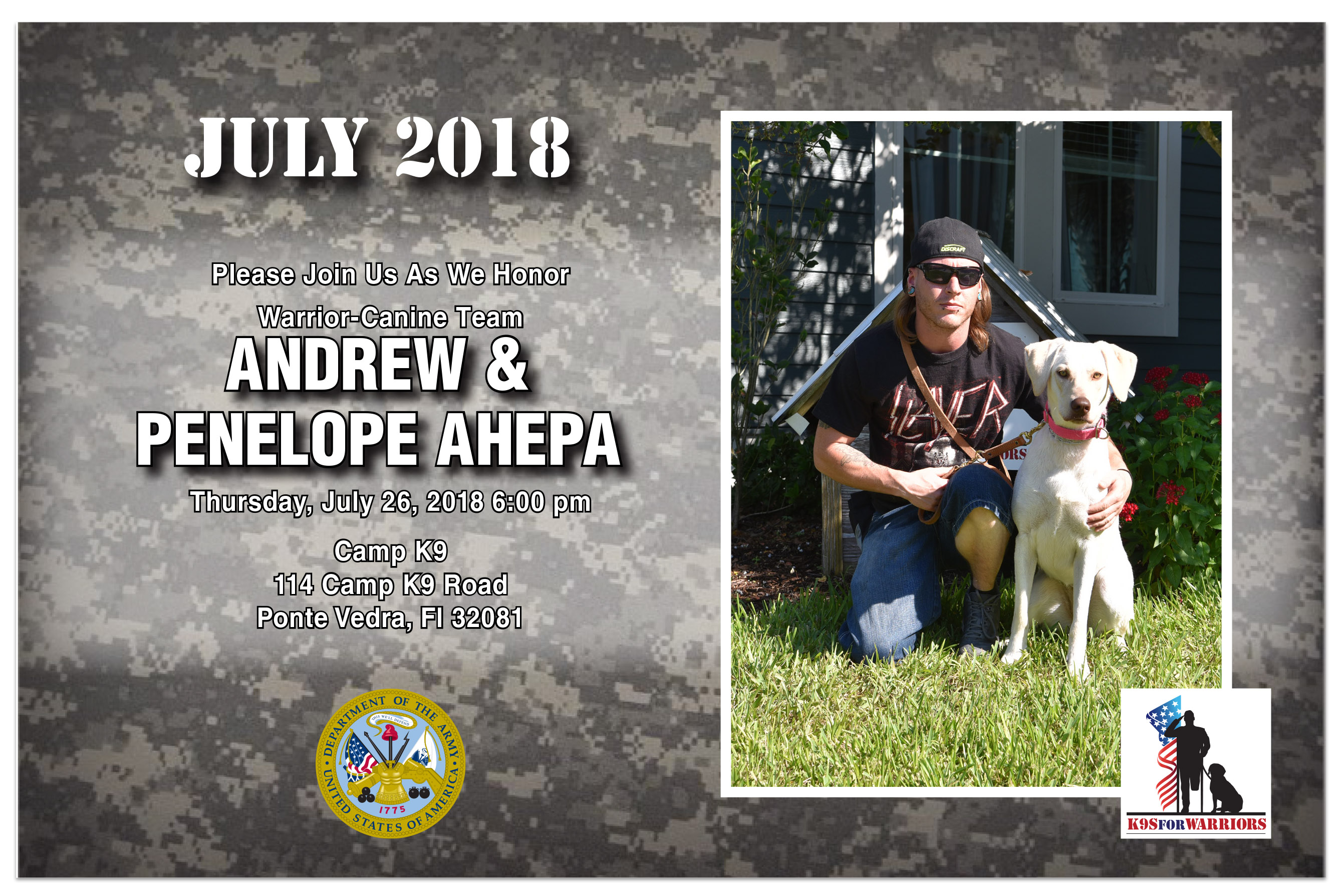 Penelope is in class and will graduate on July 26th at 6:00 pm EST. We would love to have you all come here to campus to see first-hand, however, I know you are far away. You can watch via Facebook Live on our page!